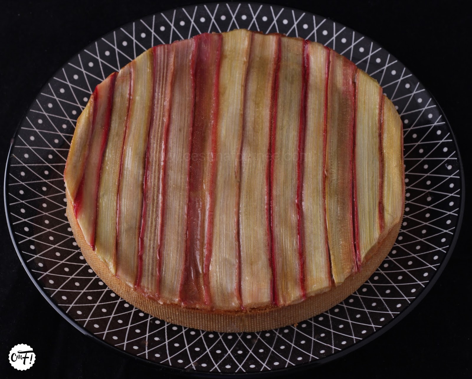 – Je reviens sur cette histoire de sucre : si je devais la refaire je mettrais 120g, pas plus. Vous me direz ce que vous en avez pensé mais j’insiste : 180g c’est n’importe quoi. A titre indicatif, Michalak met 100g de sucre pour 500g de rhubarbe dans son Fantastik rhubarbe. – A titre comparatif, et après tout un tas de calculs de dingue, voici les proportions exactes pour la crème d’amande qu’aurait utilisée Conticini dans un cercle de 20cm : 30g de beurre, 30g de poudre d’amande, 30g de sucre glace, 26g de crème pâtissière, 8g de rhum et 12g d’oeuf entier. Vous comprenez maintenant pourquoi j’ai tout simplifié. A peu de chose près c’est quasiment la même chose ——–> 26g de pâtissière et 12g d’oeuf entier pour lui ——–> 30g d’oeuf entier pour moi. – Cette tarte est tellement délicieuse que vous allez en rêver toute l’année, alors que la saison de la rhubarbe est très courte ! Pas de panique : Picard est là pour vous sauver ! J’ai acheté de la rhubarbe surgelée pour comparer, j’ai fait des compotes et je n’ai vu aucune différence. Oui j’assume. C’est vraiment une bonne solution quand on a une soudaine envie de tarte à la rhubarbe en hiver (ne venez pas crier au scandale, essayez vous verrez). Seul problème : on ne pourra pas avoir ces belles lamelles car elle en vendue coupée en morceaux. Mais ce n’est pas grave, il suffira de découper des bandes dans ces morceaux, de les caraméliser de la même façon et de les déposer en chevrons sur la tarte. On s’adapte quoi ! (je dis ça mais je n’ai pas essayé…). Vous pouvez aussi acheter trois tonnes de rhubarbe en saison et la congeler sans trop la couper. – Dans le même esprit, on peut également préférer ne pas déposer les lamelles verticalement comme Conticini, mais s’amuser à faire un tissage si l’humeur nous en dit. Je suis tout à fait séduite par cette verticalité que je trouve sobre et classe, mais on peut tout à fait laisser libre cours à son imagination. – Je ne vais pas à nouveau vous répéter à quel point cette tarte est dingue. De toute façon sans tester vous ne pourrez jamais comprendre…